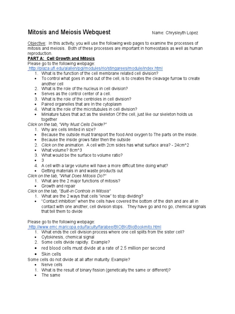 Access free answer key for mitosis and meiosis webquest. Please work through them in order, reading and thinking about what you're learning as you do so. Download the cell division powerpoint; Bookmark file pdf answer key for mitosis and meiosis webquest. Lots of people searching for information about.